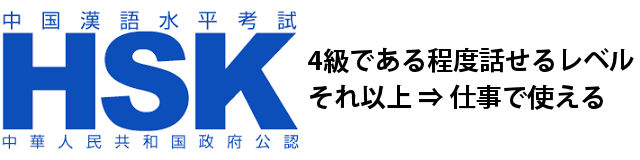 HSKで4級程度があればある程度中国語が話せるという証明になりますし、それ以上の級であると、仕事で十分使えるレベルと評価してくれるでしょう。
