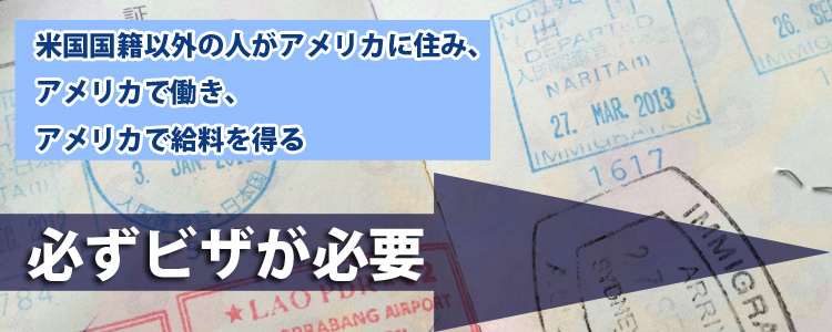 米国国籍以外の人がアメリカに住み、アメリカで働き、アメリカで給料を得るには必ずビザ(※)が必要です。