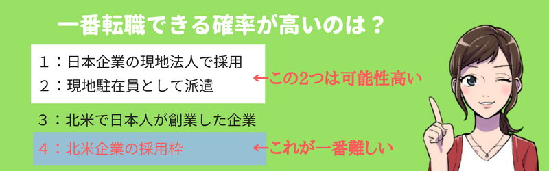 では、この北米エリアで転職する方法としては、どんなパターンが考えられるでしょうか?